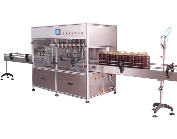 TLZD系列型全自動灌裝生產(chǎn)線時我公司研制成功的新型小包裝設(shè)備,可對多種液體粘稠液體進行定量灌裝和封蓋,并采用定量灌裝技術(shù),將微電子智能控制技術(shù)與程序控制應(yīng)用于本灌裝機,使之成為機電一體化的新型產(chǎn)品。計量采用精度流量計與微電子數(shù)控儀表相結(jié)合的方式,灌裝精度相當高,還可以方便的進行無級調(diào)解灌裝容量,非常直觀,操作非常簡單。各個灌裝頭可在一定范圍內(nèi)任意調(diào)節(jié)間距和高度,可使用各種大小形狀的容器的灌裝。輸送帶由程序控制器自動控制,采用可調(diào)速度直線步進工作方式,自動化程度相當高。另外,機身內(nèi)外絕大部分零件采用優(yōu)質(zhì)不銹鋼制造,即耐用又衛(wèi)生,長時間工作性能可靠穩(wěn)定。紅外線自動感應(yīng)式壓蓋機更是加快了成品的封裝速度。本設(shè)備性能優(yōu)良,質(zhì)量上乘、價格低廉,是油脂、石油、化工等行業(yè)的灌裝設(shè)備。